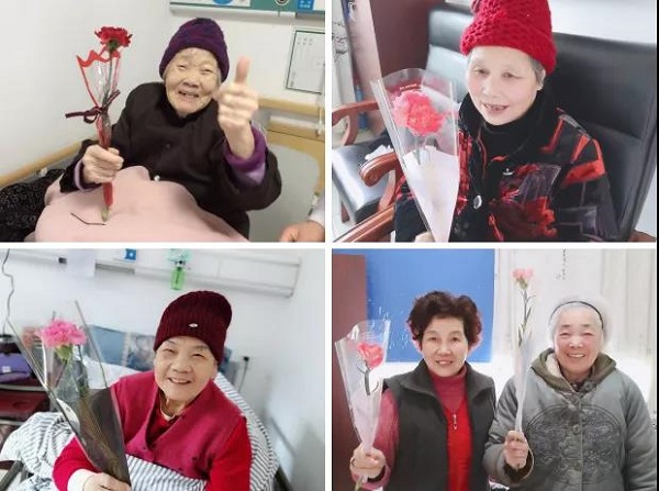 三八妇女节这天,海福祥为院内的“不老女神”送上了节日的礼物,年逾古稀的奶奶们手捧鲜花,迎着春日暖阳,笑得格外灿烂。